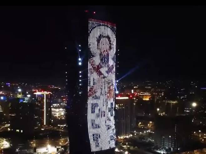 Projekcija himne Svetom Savi bila je propraćena laserskim efektima sa najviše zgrade u regionu.