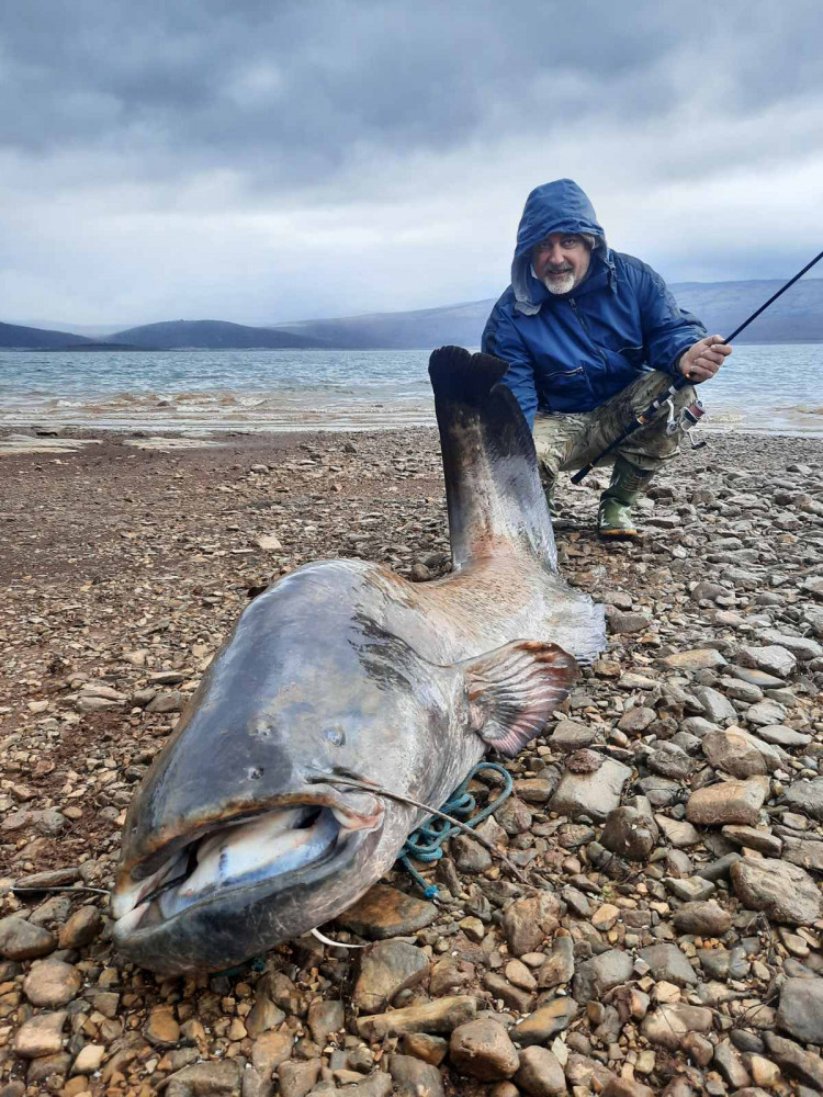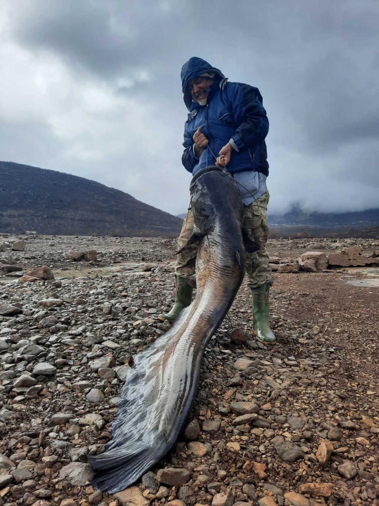 Soma kapitalca od 72 kilograma na Bilećkom jezeru ulovio je Trebinjac Marijan Perkušić uz pomoć Marka Miloševića.