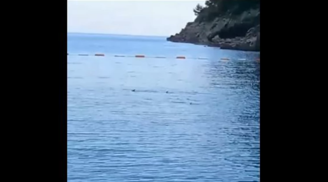 Posjetioci jedne od omilljenih plaža u Crnoj Gori, snimili su juče nevjerovatan prizor u Jadranskom moru. Naime, u Bečićima, na nekoliko metara od obale, uočene je nekoliko morskih stvorenja, za koje nije najjasnije da li su delfini ili ajkule, i to u dijelu ograđenom bovama za plivače.