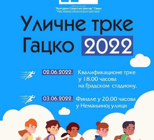 Јавна Установа “Културно спортски центар“ Гацко организује 17- те „Уличне трке Гацко 2022“  за полазнике Дјечијег вртића ( старија група – предшколци )  и ученике Основних школа ( централна и подручне школе ).