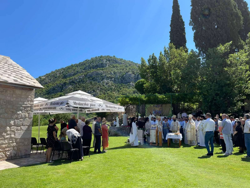 Današnju svetu liturgiju služili su episkopi hercegovački i primorski Dimitrije, niški Arsenije i dalmatinski Nikodim uz sasluženje sveštenstva Eparhije i prisustvo vjernika iz cijele Hercegovine.