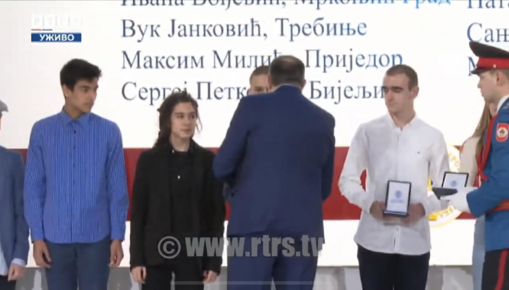 Predsjednik Republike Srpske Milorad Dodik, uručio je danas odlikovanja zaslužnim građanima i institucijama povodom Dana Republike Srpske. Ovom prilikom odlikovano je i troje učenika trebinjskih osnovnih i srednjih škola za postignute reultate na republičkim takmičenjima, kao i konkursima od nacionalnog značaja.