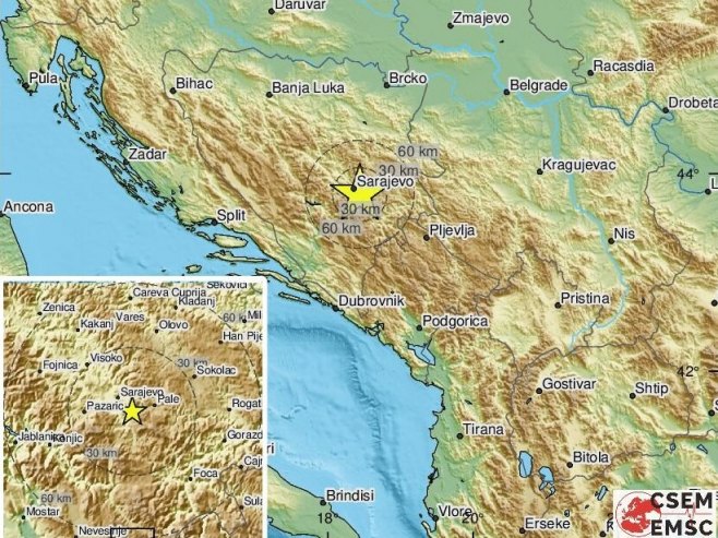 Европски медитерански сеизмолошки центар јавио је да је епицентар потреса био девет километара југоисточно од Сарајева и на дубини од девет километара.