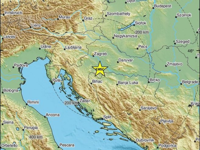 Zemljotres magnitude 2,9 stepeni po Rihteru zabilježen je u 17.43 časova kod Petrinje.