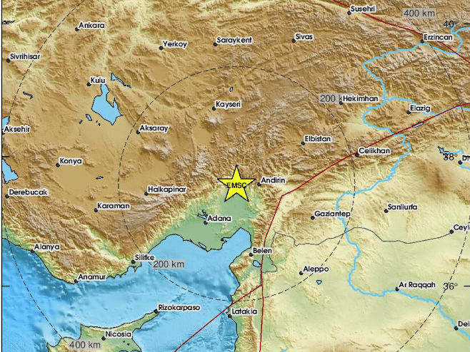 Епицентар потреса је на 22 километра сјевероисточно од Козана.