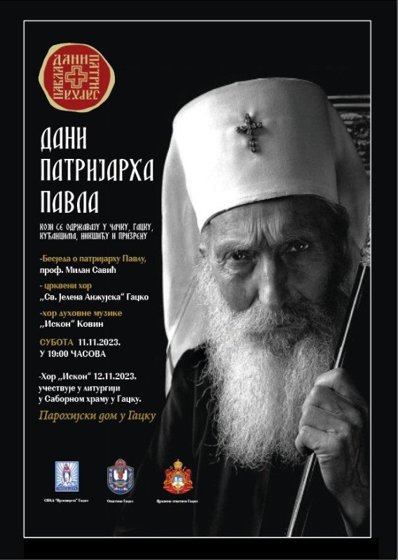U okviru manifestacije „Dani patrijarha Pavla“ koja se tradicionalno održava u Čačku, Kućancima, Nikšiću i Prizrenu, u Gacku će u subotu 11. novembra u Parohijskom domu biti upriličen prigodan program.