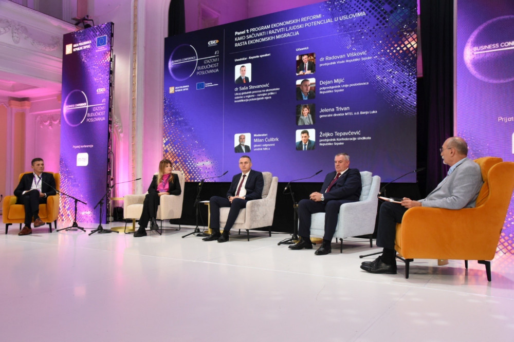 Učesnici panela razgovarali su o konkretnim koracima ka efikasnijem sprovođenju reformi i kako iskoristiti globalne prilike uz suočavanje sa lokalnim demografskim i socijalnim izazovima. Uz generalnu direktorku kompnije m:tel, u diskusiji su učestvovali predsjednik Vlade Republike Srpske Radovan Višković, potpredsjednik Unije poslodavaca Republike Srpske Dejan Mijić, te predsjednik Konfederacije sindikata Republike Srpske Željko Tepavčević.