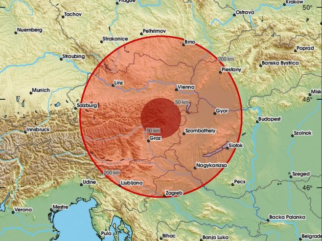 Zemljotres magnitude 4,5 stepeni po Rihteru registrovan je na istoku Austrije, javio je Evropski mediteranski seizmološki zavod /EMSC/.