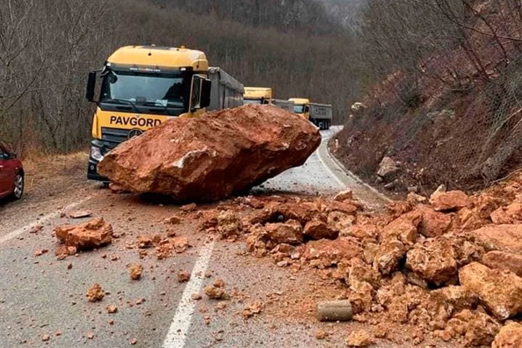 Ogromna stijena odronila se na put Miljevina-Dobro polje u mjestu Tuhalji, stoji na Facebook stranici Teretnjaci.ba.