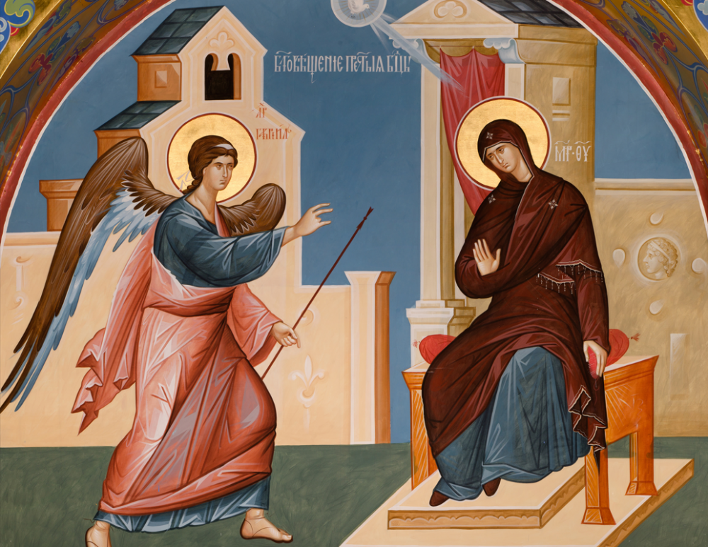 Pola godine pošto je prvosvešteniku Zahariji projavio da će u dubokoj starosti dobiti sina koji će biti Gospodnji Preteča /Sveti Jovan Krstitelj/, Arhanđeo Gavrilo javio se Prečistoj Djevici Mariji u Nazaretu, pozdravivši je riječima: "Raduj se, blagodatna! Gospod je s tobom, blagoslovena si ti među ženama!"