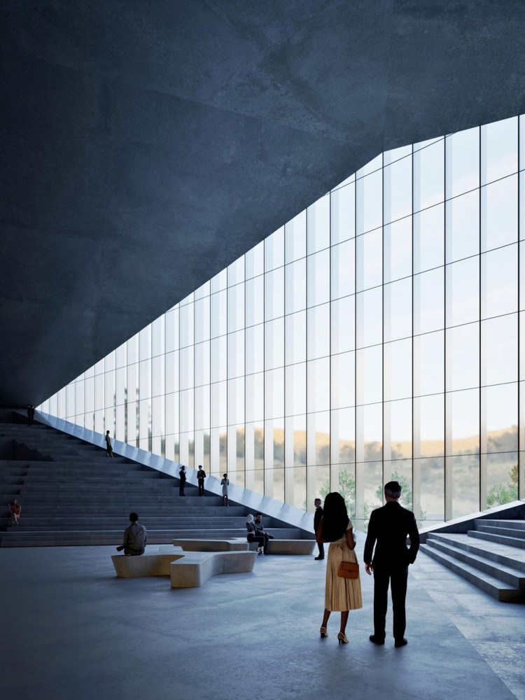 „Specifična triangulirana geometrija tog prostora primarno služi kao prilazni hol različitim dvoranama kongresnog centra, a dodatno omogućava različite scenarije: neformalna druženja, izložbe, predavanja, koncerte… ili samo prolaz, što je karakteristično za javno dostupne polivalentne prostore”, ističu arhitekte.