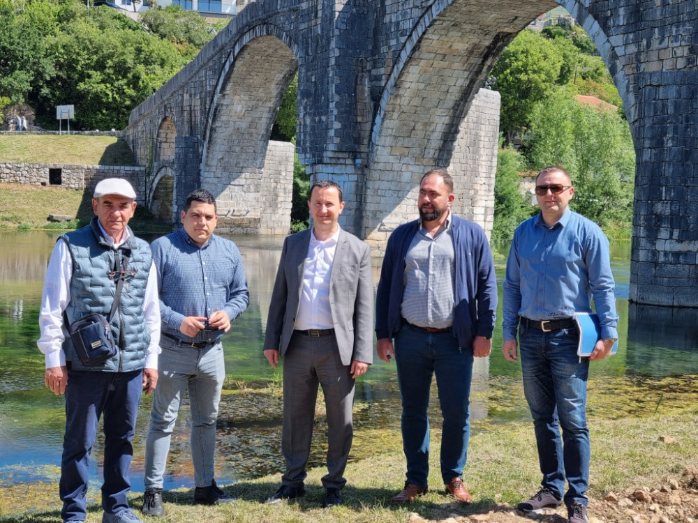 Gradonačelnik Trebinja Mirko Ćurić i predstavnici preduzeća "Hidroelektrane na Trebišnjici" obišli su danas Arslanagića /Perovića/ most u ovom gradu na kojem su u toku radovi u okviru projekta osvjetljenja tri mosta u Trebinju, što sa 910.000 KM finansira ovo preduzeće.