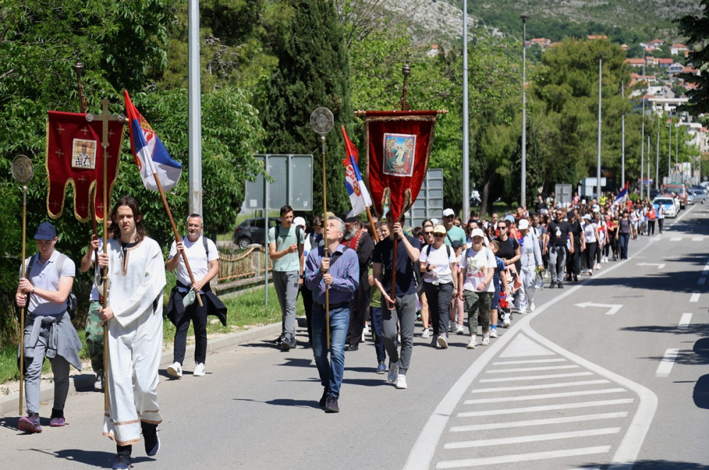 Litija u kojoj je mnogo mladih i djece krenula je ispred trebinjskog Sabornog hrama nakon molitve i blagoslova sveštenstva, a u manastir u Mrkonjićima treba da stigne do 18.00 časova na večernju službu.