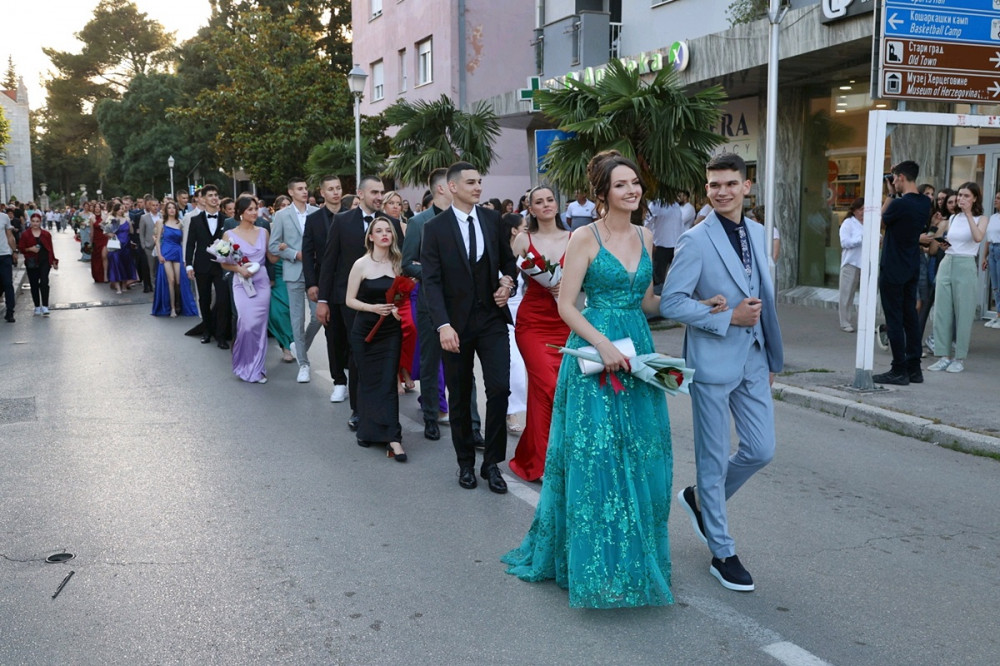 Proslava mature počela je okupljanjem i polaganjem cvijeća na Dučićev spomenik, nakon čega je ulicama grada priređen tradicionalni defile maturanata – do hotela „Leotar“, gdje će maturskom zabavom, njih 92 iz ove generacije, obilježiti završetak srednje škole.