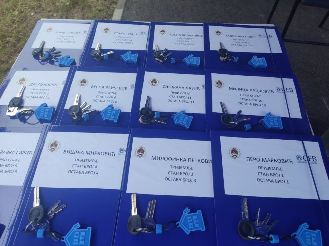 Predsjednik Republike Srpske Milorad Dodik uručuje ključeve za 12 stanova za izbjegla i raseljena lica u bijeljinskom naselju Amajlije.