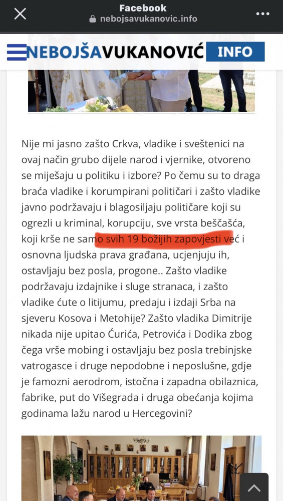 Činjenica je da mu klevetanje sveštenstva ide od ruke, ali I da nije toliko vičan kada su Božije zapovjesti u pitanju, te se ovoga puta malo zabrojao. Božijih zapovesti je 10, a ne 19 kako je napisao Vukanović.