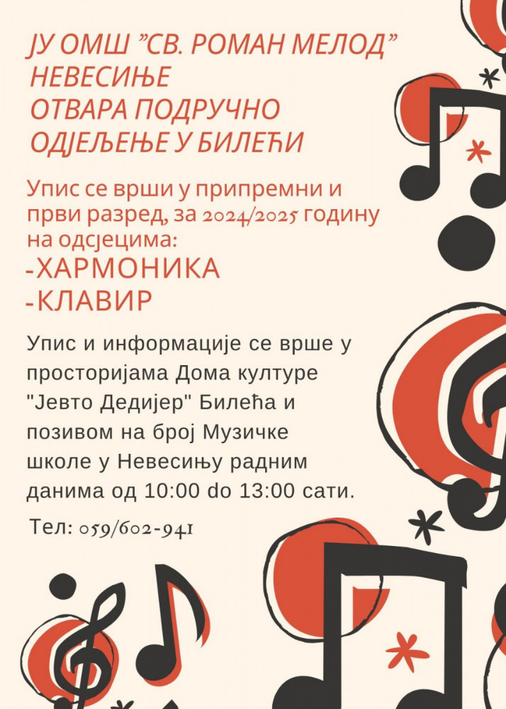 Učenici mogu da se upišu u Muzičku školu, i to uzrasta od 6 do 9 godina u pripremni razred, a uzrasta od 9 godina u prvi razred, tj. kad krenu u 4 razred osnovne škole.