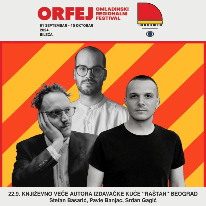 Večeras, 22. septembra, u 20 časova, u maloj sali Doma kulture predstaviće se mlada izdavačka kuća “Raštan” iz Beograda. Raštan izdavaštvo čini mladi tim urednika i autora i za kratko vrijeme postali su zapažena izdavačka kuća, koja otvara prostor mladim autorima. U Bileći će nam se predstaviti Srđan Gagić, pjesnik i urednik, Stefan Basarić, pjesnik, i Pavle Banjac, pjesnik.