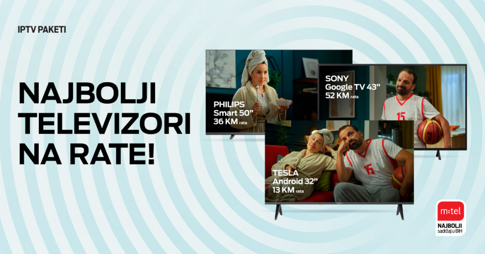 Ovog novembra preporučujemo vam: PHILIPS 50PUS7608 (Smart) uz mjesečnu ratu od 36 KM, SONY 43X75WL (Google TV) uz mjesečnu ratu od 52 KM ili TESLA 32E635BHS (Android) za čiju ratu ćete mjesečno izdvajati samo 13 KM .