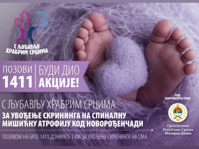 Увођење скрининга на спиналну мишићну атрофију код новорођенчади у Републици Српској тема је овогодишње акције "С љубављу храбрим срцима".