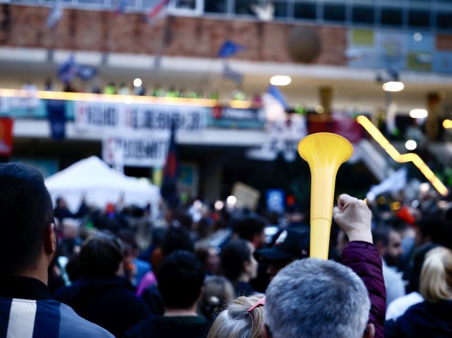 Студенти у блокади окупили су и испред медијског јавног сервиса у Новом Саду.