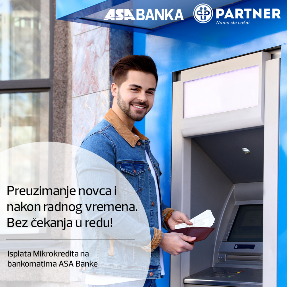 Partner mikrokreditna fondacija, ASA Banka d.d. Sarajevo i Bamcard d.d. udružili su snage kako bi klijentima Partner MKF-a omogućili novu, revolucionarnu uslugu podizanja mikrokreditnih sredstava. Zahvaljujući ovoj inovaciji, klijenti od danas mogu podizati odobrene mikrokredite na velikom broju bankomata ASA Banke, i to bez potrebe za korištenjem kartice.