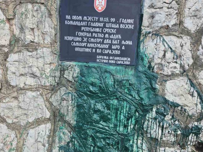 Nepoznati počinilac prosuo je masnu zelenu boju, ponovo oskrnavivši spomen-ploču na Vracama postavljenu u čast generala Ratka Mladića koja svjedoči o samoorganizovanju Srba u najtežim trenucima, sa željom da sačuvaju vjekovna ognjišta.