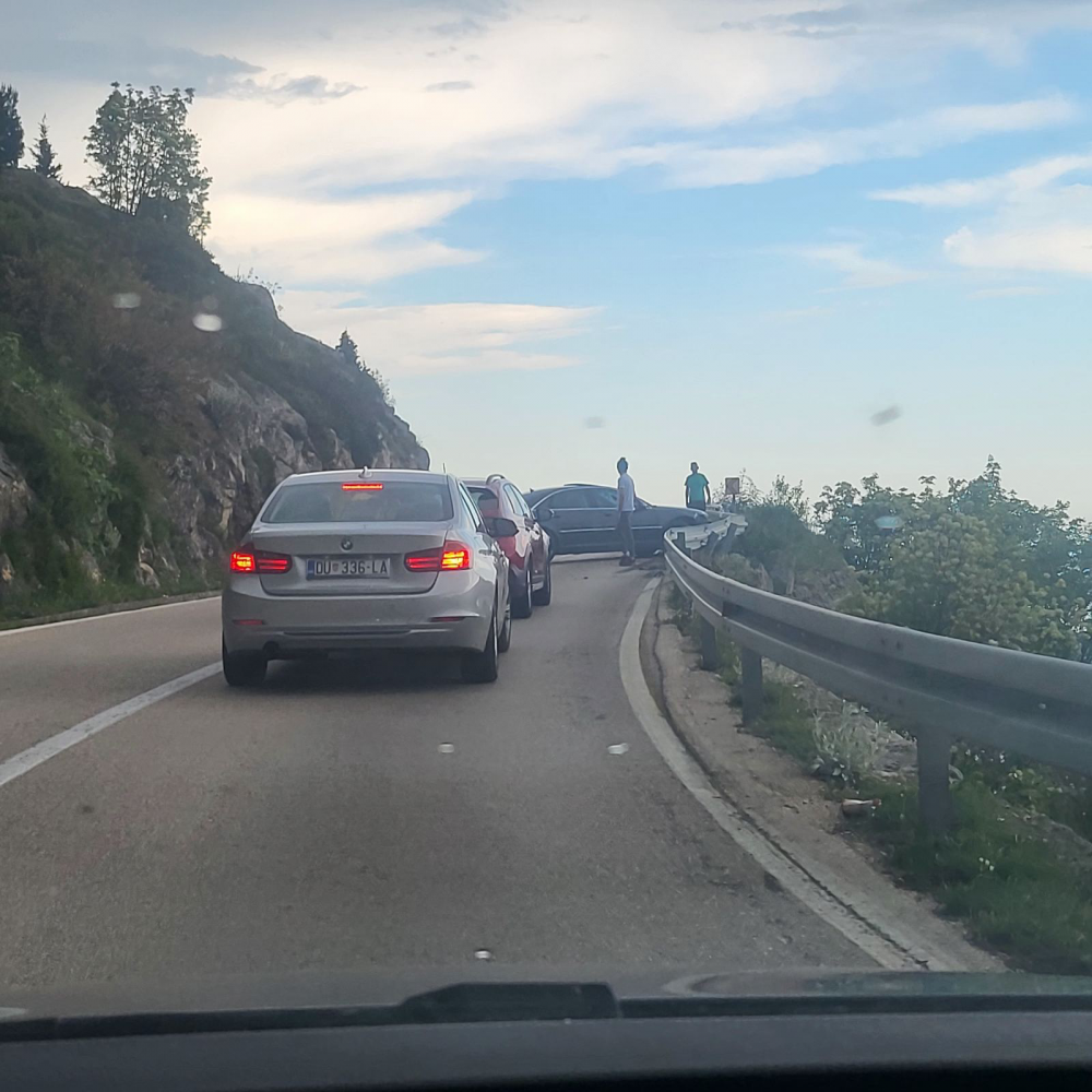 Na putu ka Ivanjici, odmah posle pumpe, dogodio se saobraćajna nezgoda u krivini. Kako javljaju vozači, manji automobili mogu proći, dok se ostalima savetuje oprez.