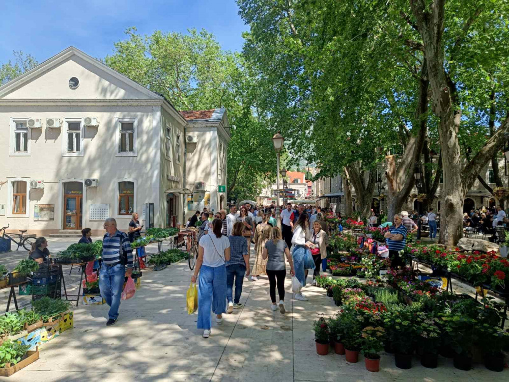 Danas, prve subote u maju, Trebinje je oživjelo šarenilom i mirisima cvijeća pod stoljetnim platanima na Trgu Slobode.Zbog održavanja Festivala vina, koji se danas održava u Trebinju, dio gradske pijace privremeno je premješten pod platane, što je dodatno doprinijelo živopisnoj atmosferi u centru grada.