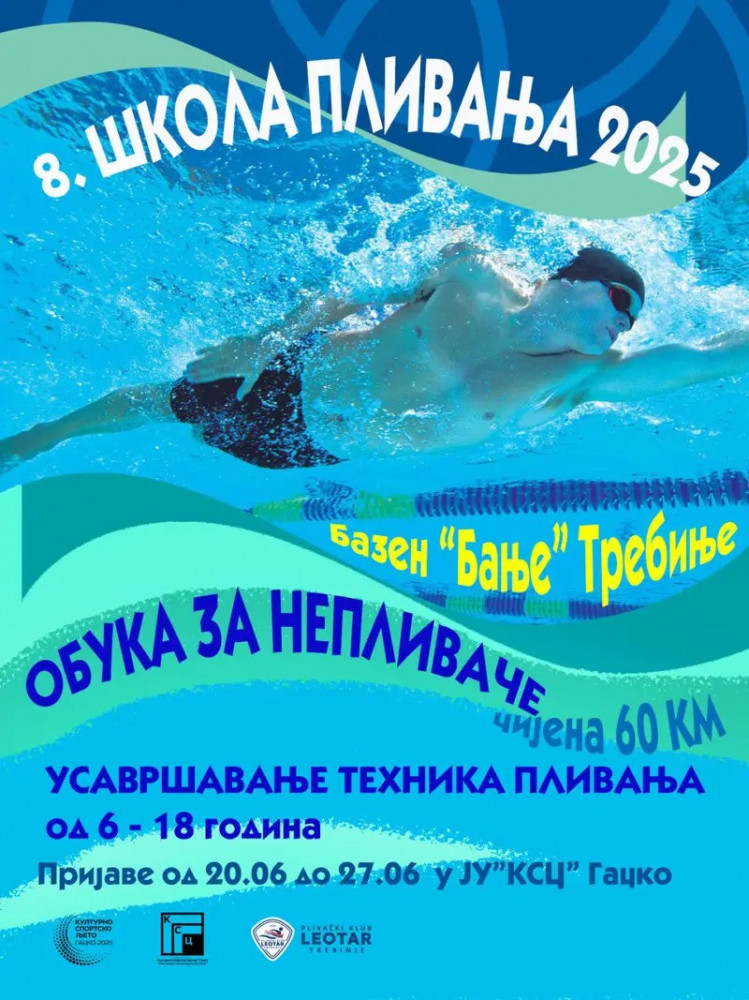 U sklopu Kulturno sportskog ljeta Gacko 2025 i ove godine od 1. jula kreće sa radom 8. Škola plivanja 2025. Škola plivanja se tradicionalno održava već osam godina u saradnji sa Plivačkim i vaterpolo klubom „Leotar“ iz Trebinja.