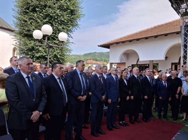 Liturgiji prisustvuju predsjednik Republike Srpske Milorad Dodik, predsjednik Narodne skupštine Republike Srpske Nenad Stevandić, premijer Srpske Radovan Višković, savjetnik predsjedika Srbije Miloš Vučević, ministari u vladama Srpske i Srbije, načelnici brojnih opština, predstavnici Trećeg pješadijskog Republika Srpska puka Oružanih snaga BiH i mnogobrojni vjernici.