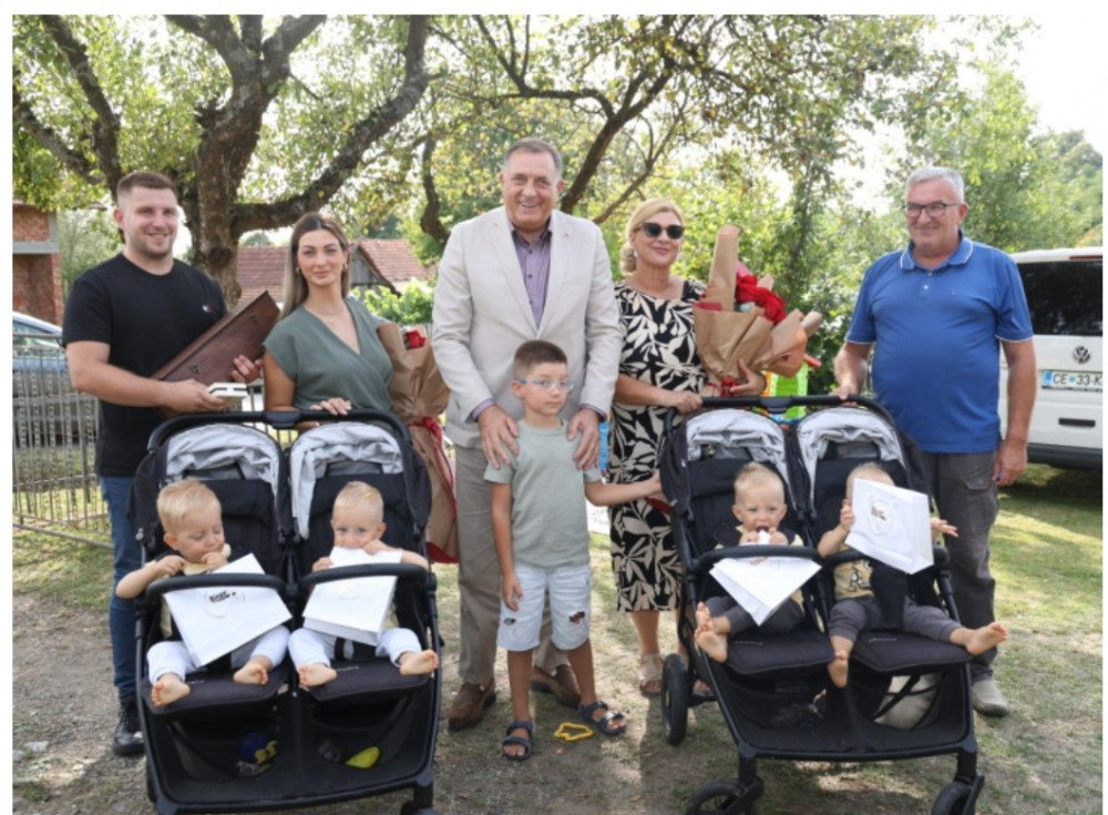 Predsjednik Republike Srpske Milorad Dodik posjetio je porodicu Petrović, Milanu i Nemanju, ponosne roditelje četvorki koje su se rodile početkom prošle godine.