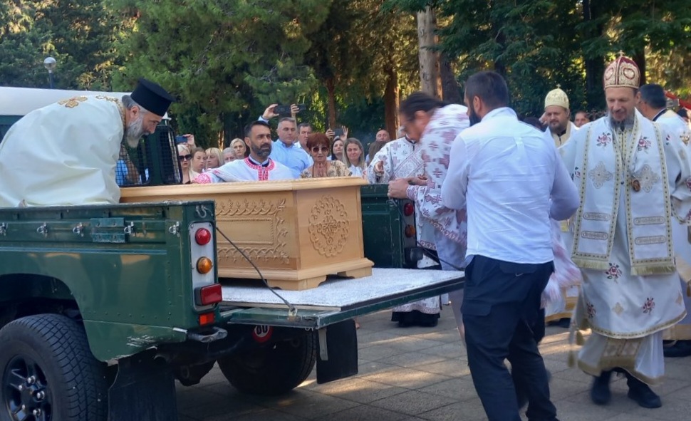 Obilježavanje slave Grada i Sabornog hrama - Svetog preobraženja Gospodnjeg, počela je dočekom moštiju Svete Ane - majke Svetog Vasilija Ostroškog i Tvrdoškog u porti hrama.