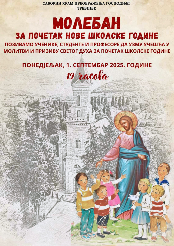 Iz trebinjskog Sabornog hrama pozivaju sve učenike, studente i profesore da učestvuju u molitvi i prizivu Svetog duha za početak školske godine.