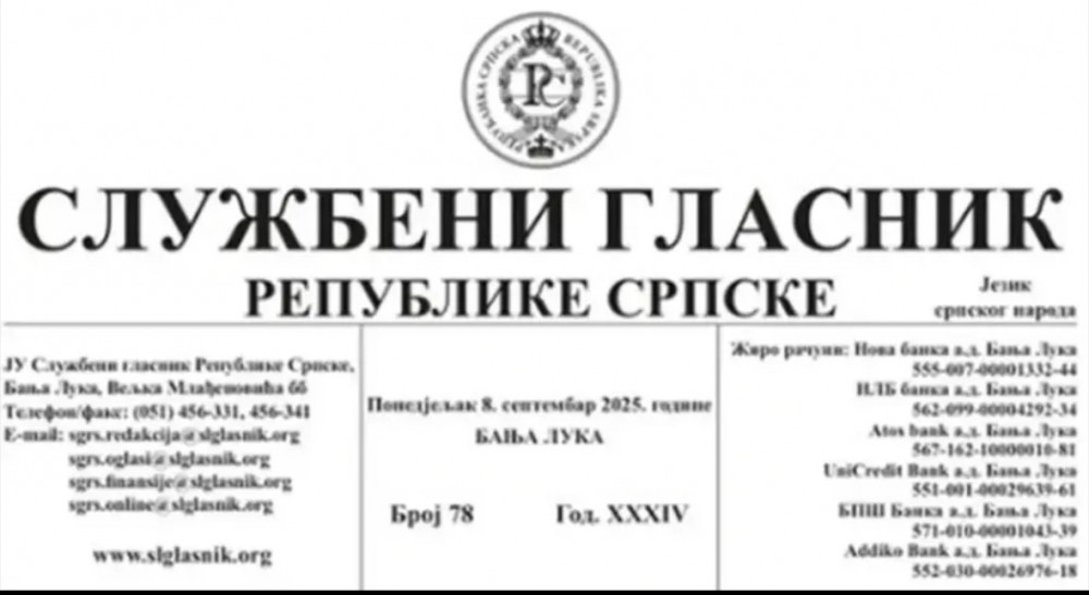 Vršilac dužnosti direktora "Službenog glasnika Republike Srpske" Miloš Lukić izjavio je Srni da je objavljen novi broj ove publikacije u kojim je i odluka o izboru nove Vlade Republike Srpske koja će stupiti na snagu sutra.