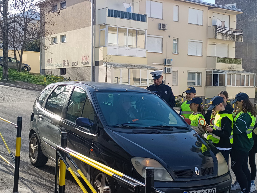 U akciji su učestvovali i učenici koji djeluju kao školska saobraćajna policija, s ciljem da se skrene pažnja vozačima na pravilno parkiranje i bezbjednost djece u saobraćaju.