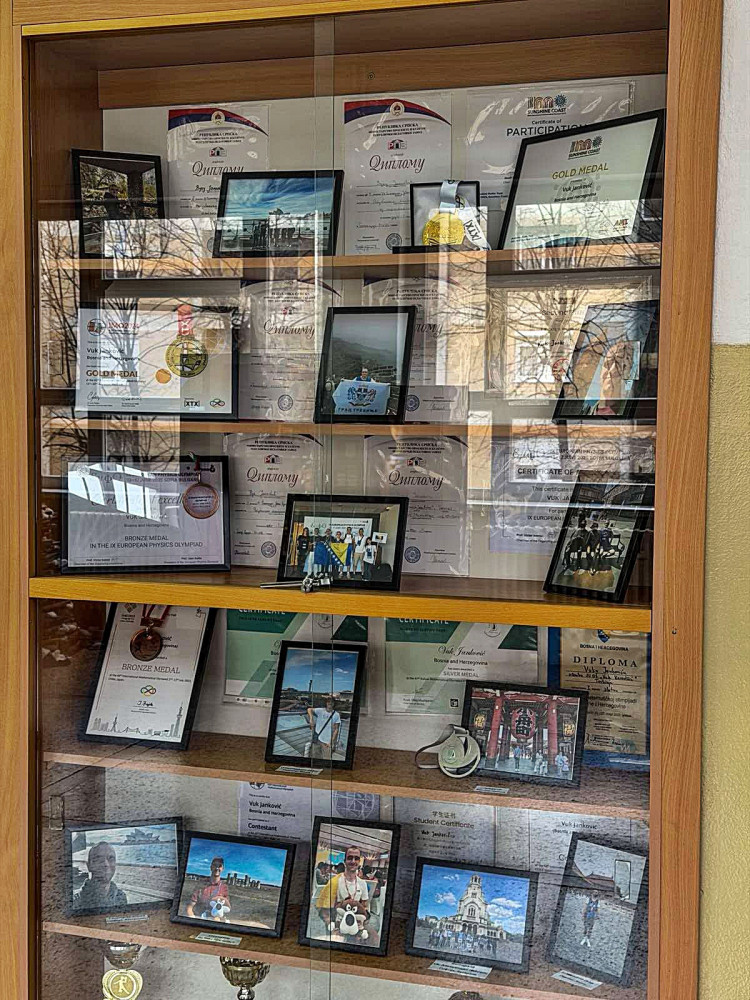 "Tako će zlatne medalje sa Međunarodnih matematičkih olimpijada u Australiji i Velikoj Britaniji, bronzana medalja iz Japana, bronzana medalja sa Evropske fizičke olimpijade u Bugarskoj, kao i brojna priznanja na neko vrijeme krasiti vitrine naše škole", kažu u Gimnaziji.