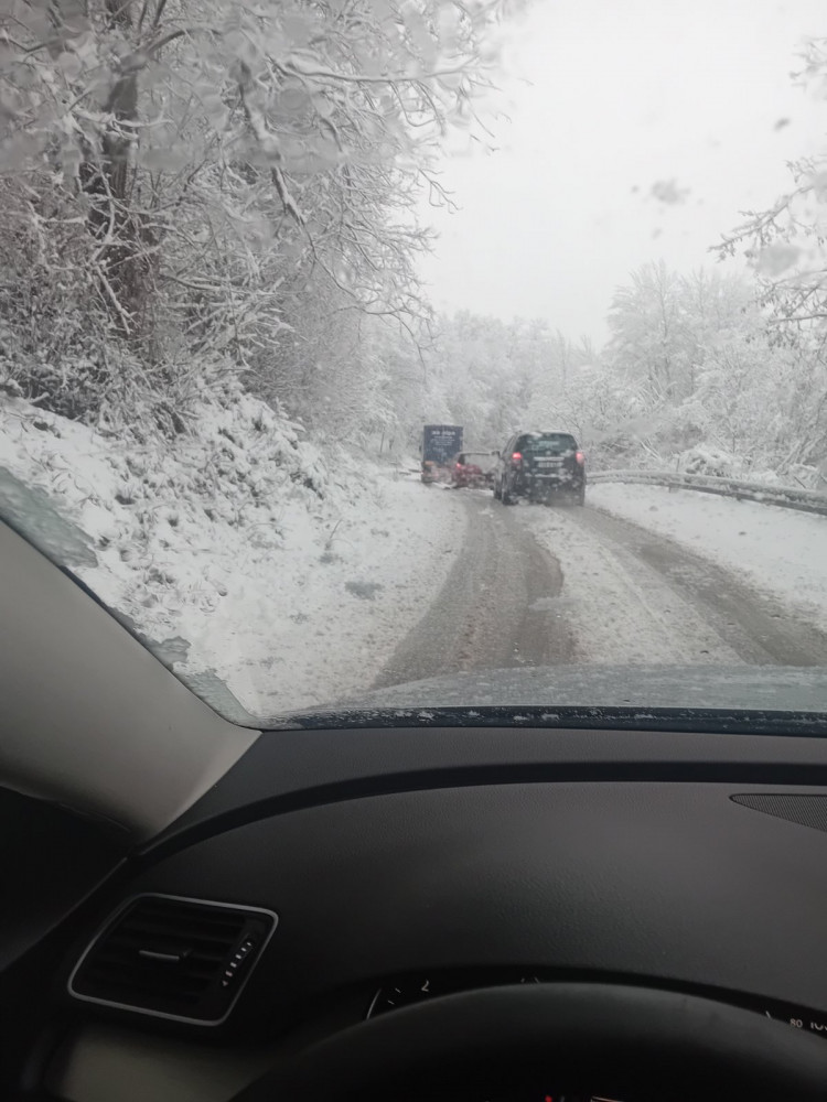 Prema informacijama sa terena, snijeg koji intenzivno pada stvara poteškoće u odvijanju saobraćaja, a na pojedinim dionicama formirane su kolone vozila. Kolovoz je prekriven snijegom, a dodatni problem predstavlja klizav teren.