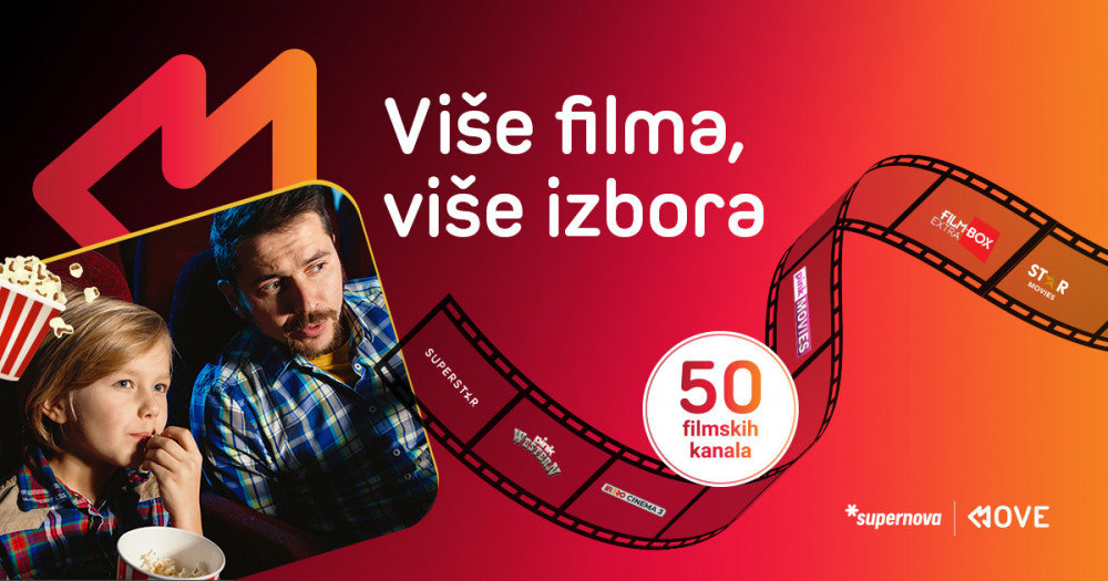 Da li ste znali da u osnovnom TV paketu Supernove možete uživati u skoro 50 filmskih kanala? Bilo da ste raspoloženi za premijere domaćih serija, kultne klasike, napete trilere, romantične priče, porodične avanture ili najveće svjetske blokbastere, bogat filmski i serijski sadržaj uvijek vam je na dohvat ruke.
