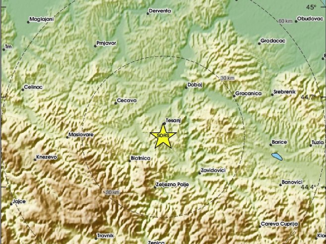 EMSC navodi da je epicentar bio udaljen pet kilometara od Tešnja i 41 kilometar od Zenice.
