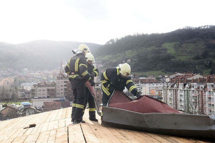 Младен Ћућун, шеф Одсјека за послове цивилне заштите и Професионалне територијалне јединице, истиче да је, уз помоћ специјалних ватрогасних возила, уклоњено на десетине квадрата лима, који су представљали опасност, док је дио однесеног лименог крова враћен на кровну конструкцију.