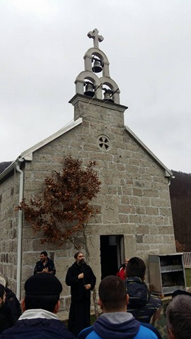 Nalaganju badnjaka prisustvovalo je stotinjak vjernika, a prethodno je sveštenik Velemir Kovač služio večernje u crkvi Svetog Cara Lazara.