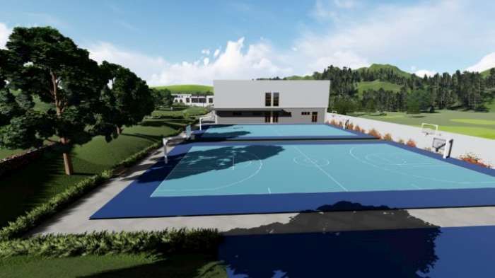 Sportski kompleks raspolagaće sa pet otvorenih terena, dva za košarku, dva za odbojku i jedan za tenis.