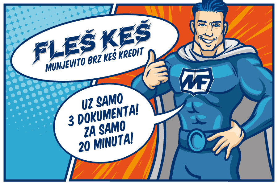 Тим поводом, из Микрофина нам стиже капетан Креда и доноси Флеш кеш, муњевито брз кеш кредит, који се одобрава за 20 минута, уз само три документа.