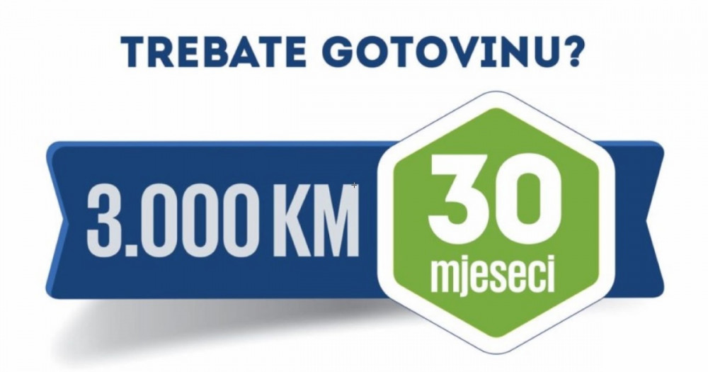 Iznos 3.000 KM sa rokom otplate od 30 mjeseci.