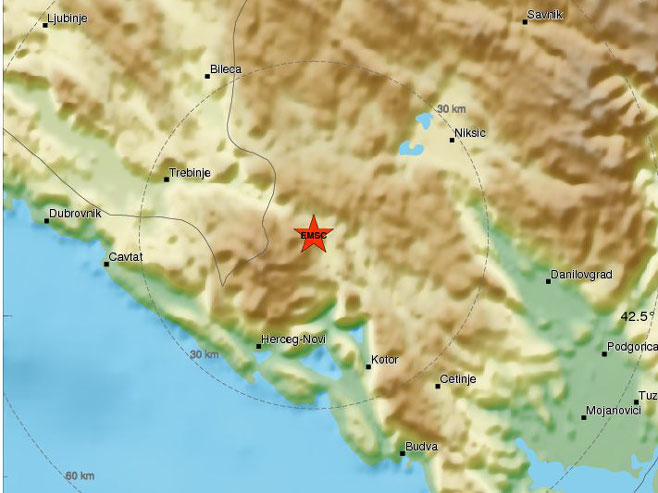 Zemljotres jačine 3,6 stepeni Rihterove skale registrovan je danas sa epicentrom na sedam kilometara sjeveroistočno od Kruševice u Crnoj Gori ka granici sa Republikom Srpskom prema Trebinju.