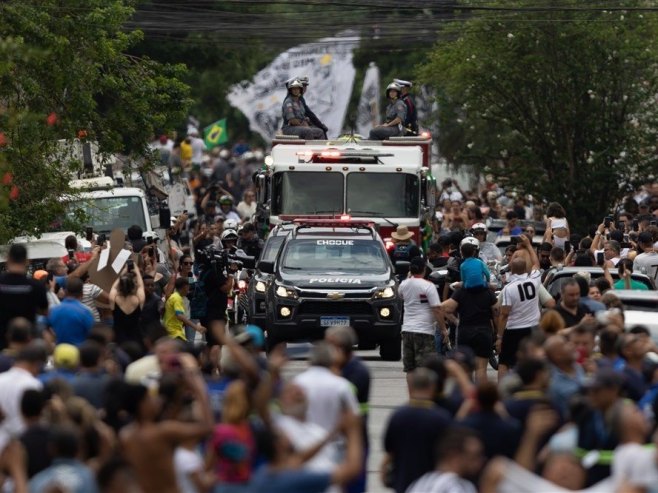 Legendarni brazilski fudbaler Edson Arantes do Nasimento Pele prevezen je sa stadiona Santosa "Urbano Kaldeira" do groblja "Memorijal nekropol ekumenika" gdje je sahranjen.