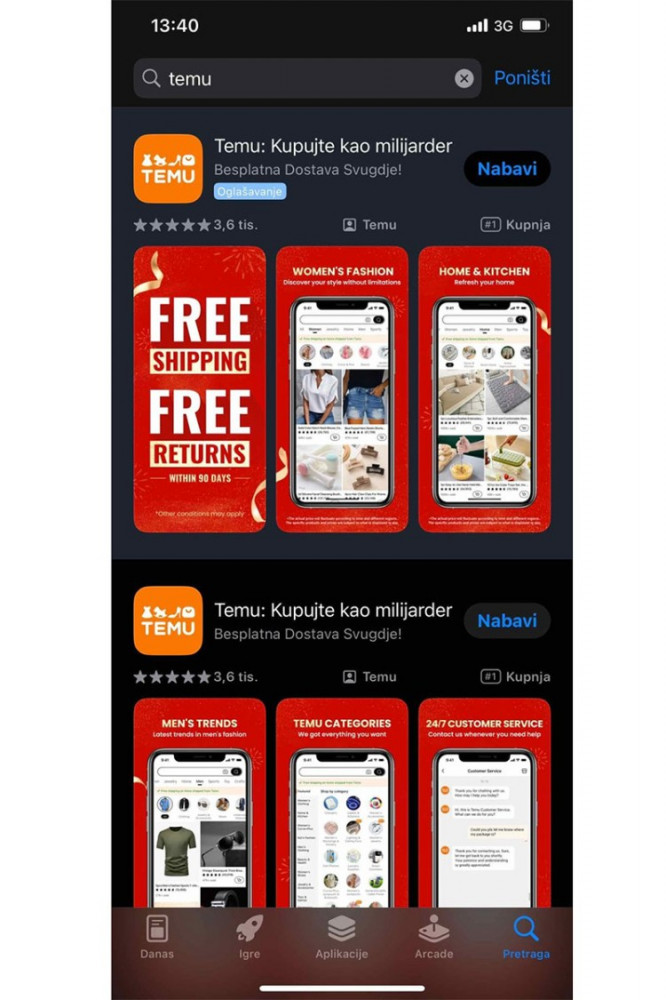 - Preuzimajte aplikacije samo sa zvaničnih izvora (App Store i Google Play), ali provjerite i ime izdavača. Originalnu "Temu" aplikaciju izdaje "Temu International LLC".