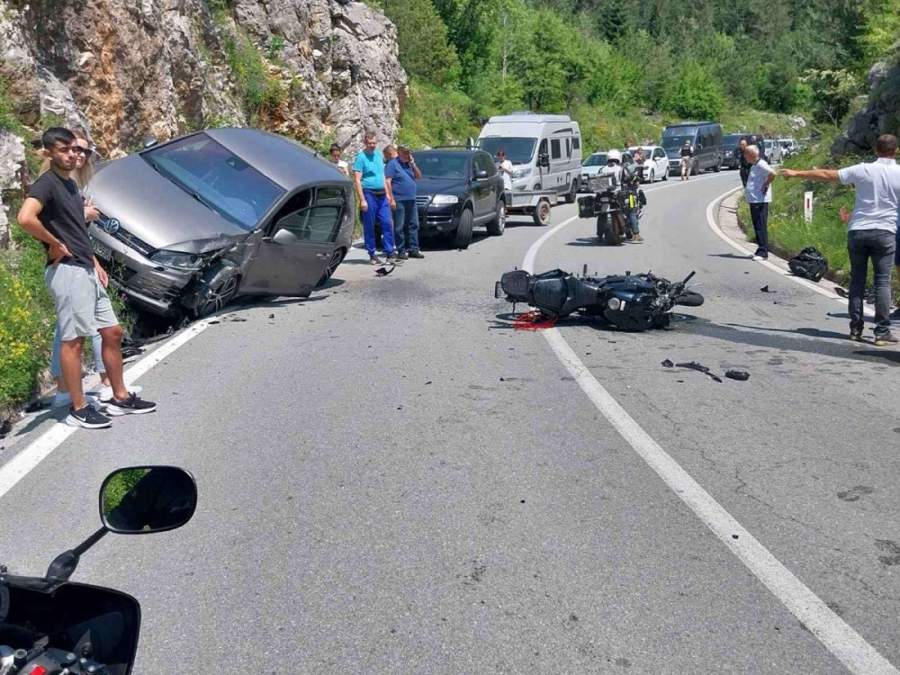 U mjestu Rasova na putu Žabljak- Đurđevića Tara došlo je do sudara automobila marke Golf i motocikliste.
