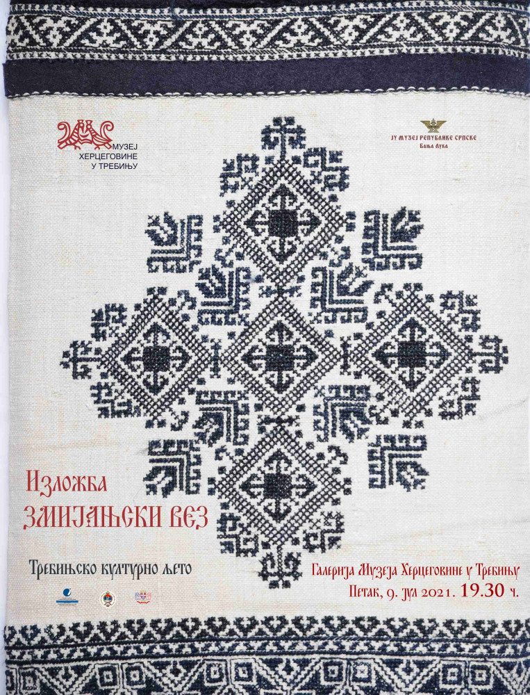 Петак, 9. јула 2021. године, са почетком у 19.30 часова, у Галерији Музеја Херцеговине у Требињу уприличити отварање изложбе Музеја Републике Српске “Змијањски вез - свјетско нематеријално насљеђе” аутора Данијеле Ђукановић, музејског савјетника, етнолога. Музеј Републике Српске у Бања Луци овом изложбом представља причу о везу који се од 2014. године налази на УНЕСКО-вој репрезентативној листи нематеријалног културног наслеђа човјечанства, као први елеменат уврштен из Републике Српске, БиХ.
